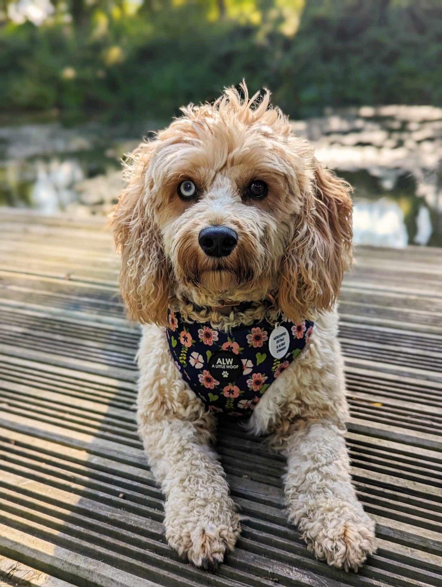 OUR BEAUTIFUL COCKAPOO MODELLING ONE OF OUR STUNNING DOG HARNESSES