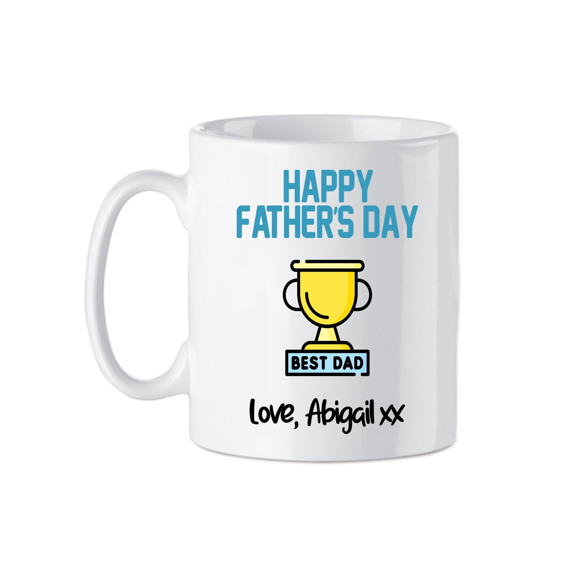 White Ceramic Fathers Day Mug, personalised with child's name - great gift for the Best Dads!