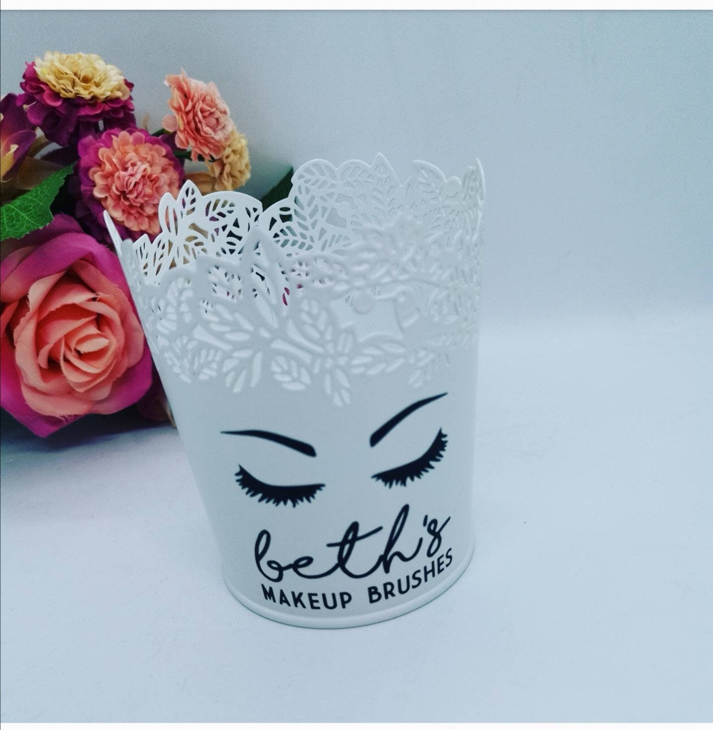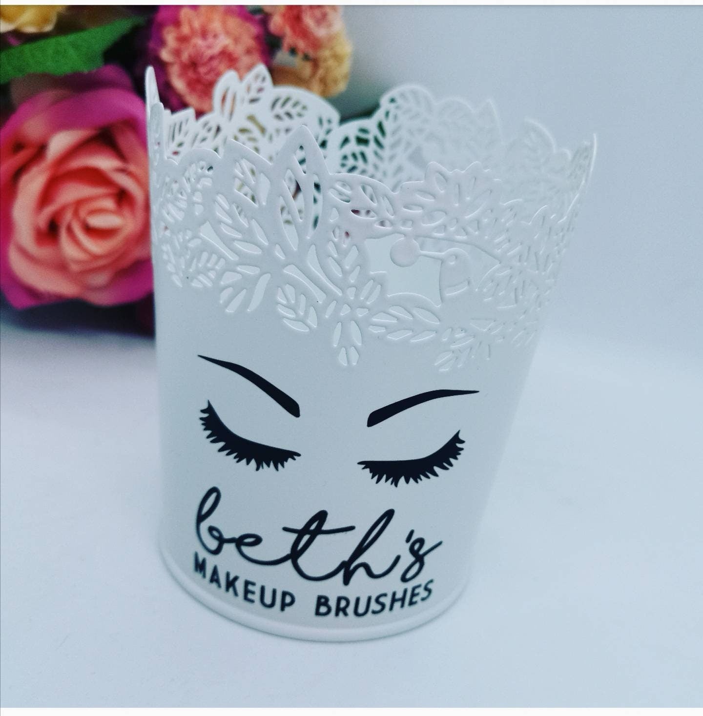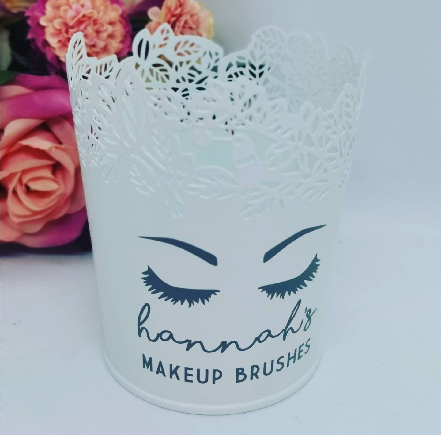 Unless otherwise requested, the text will read 'makeup brushes' under the name and image design. Eyelash design is included as standard unless otherwise requested.